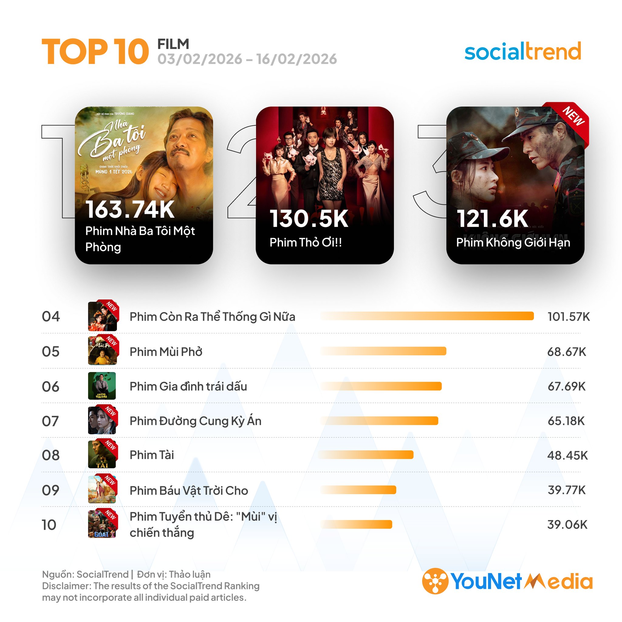 Nhìn chung, mùa phim Tết năm nay đánh dấu bước chuyển của điện ảnh Việt, với các vị trí dẫn đầu đều thuộc về phim nội và tăng trưởng trải rộng ở nhiều tác phẩm. Thị trường đang cho thấy dấu hiệu tái cấu trúc theo hướng đa cực, thay vì phụ thuộc vào một ‘bom tấn’ duy nhất.